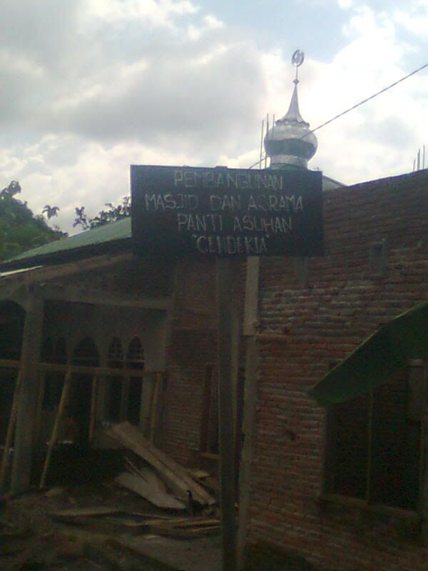 bertuliskan “Panti Asuhan Cendikia 50 meter” diikuti tanda panah. Sang